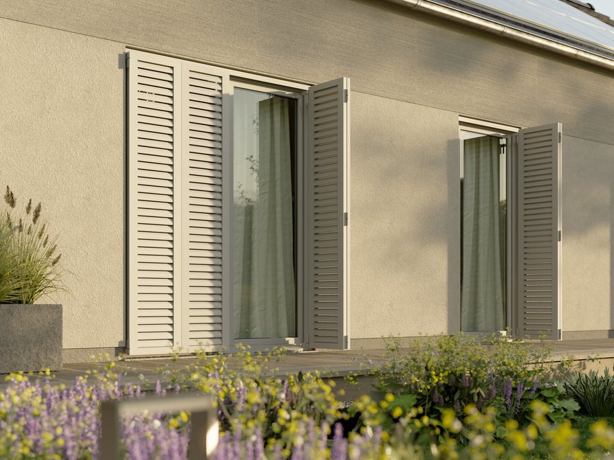 - Faltschiebeläden: Sie verpassen deinem Haus nicht nur einen neuen, ausgefallenen Touch, sondern können auch für die Verdunklung der Zimmer dienen. Es gibt sie in der Sicht- und Wetterschutz-Variante „SUN“, die sich dem Sonnenstand anpassen lässt, oder in der Variante „NATURE“ mit Naturholzstreben.