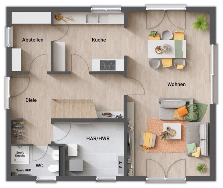 ab Preis1 €Abbildungen enthalten Sonderwünsche die nicht Vertragsbestandteil sind, regionale Preis- und Ausstattungsänderungen möglich. Schlüsselfertig im Sinne dieses Angebotes bedeutet: ohne Tapezier- und Teppichverlegearbeiten.