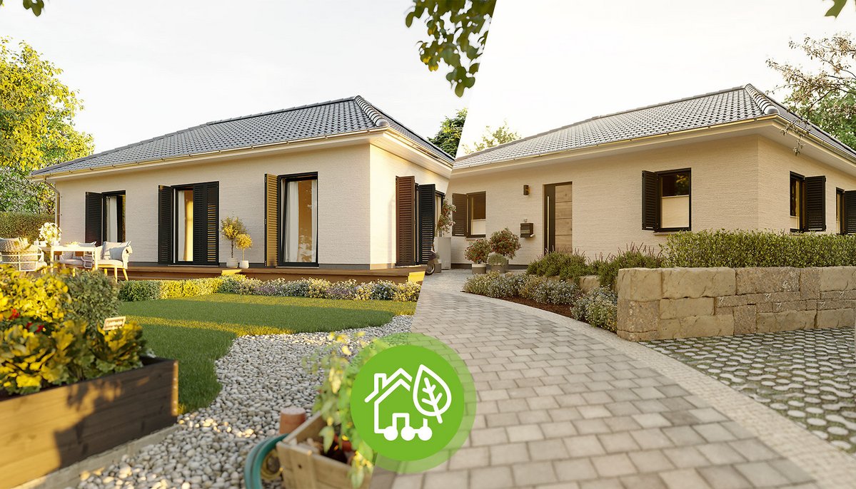 Ein Bungalow verspricht maximalen Wohnkomfort auf einer Ebene und ist mit seiner einzigartigen Bauform gleichzeitig ein echter Hingucker. Dank der ebenerdigen Wohnfläche ohne Treppen können Sie hier bis ins hohe Alter selbstbestimmt wohnen. Anstatt in die Höhe, wird bei einem Bungalow in die Breite gebaut. Auch bei der Auswahl des Daches müssen Sie sich bei dem beliebten Haustyp nicht einschränken. Sie haben die Wahl zwischen einem Flach-, Sattel- oder Walmdach.
